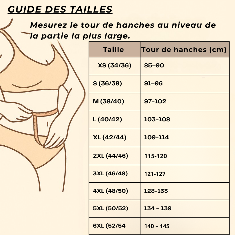 Si vous êtes entre deux tailles, choisissez la plus petite pour un maintien optimal.